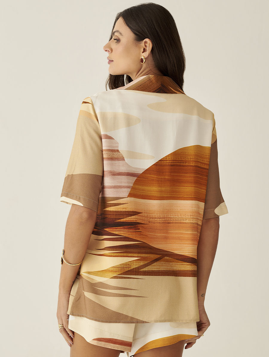Combine o Short Curto Estampa Duna para um look coordenado elegante, moderno e super fotogênico.