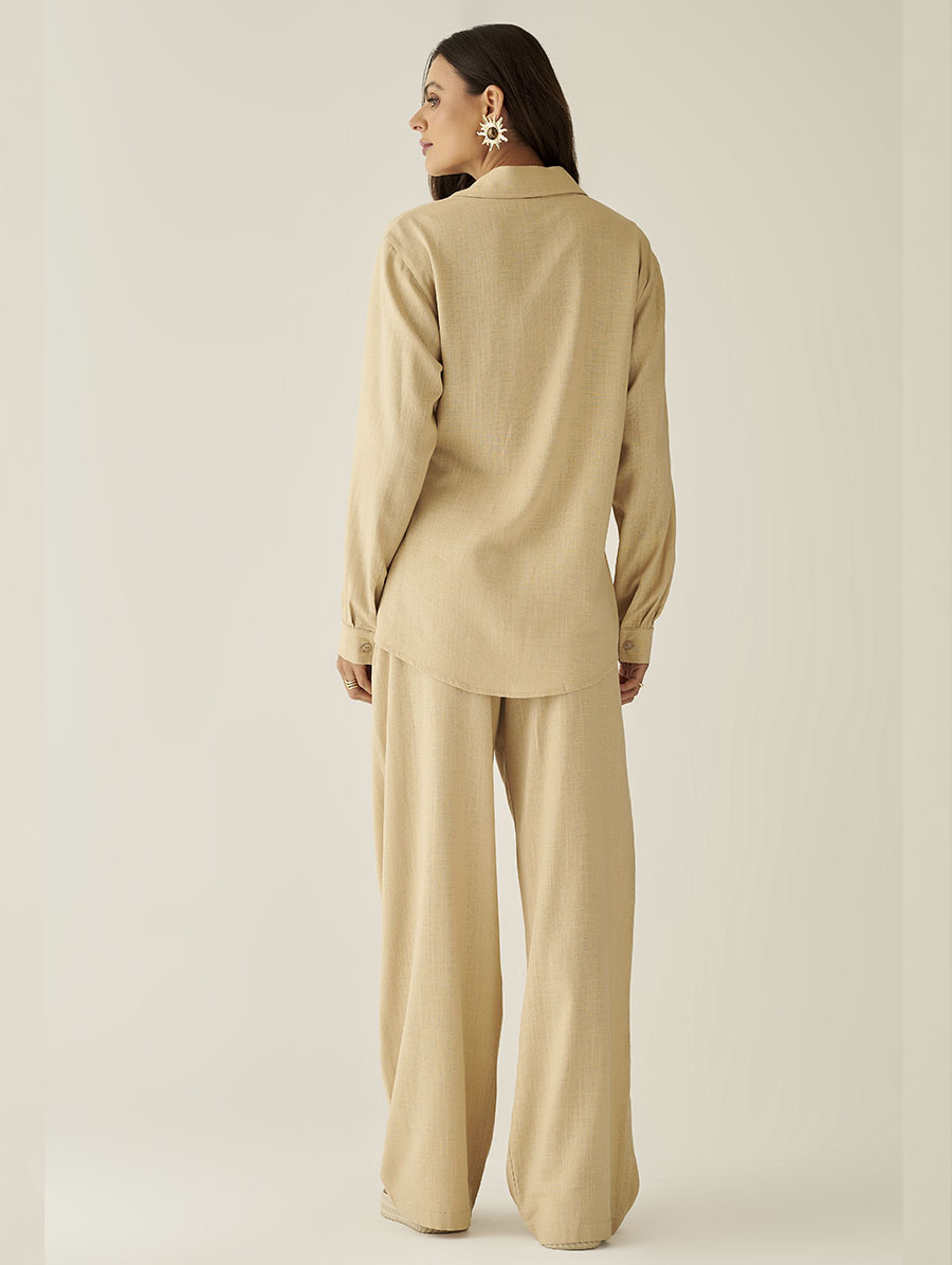 Use com a Camisa de Mangas Longas Areia Luzente para um conjunto monocromático super elegante, ou combine com tops leves e peças em tons naturais para criar looks no mood resort chic.