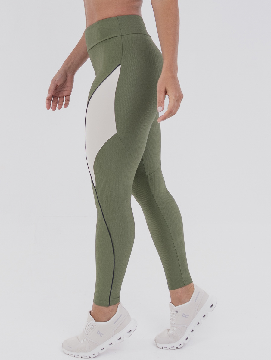 Calça Legging Cós Alto Verde Cacto com Recortes