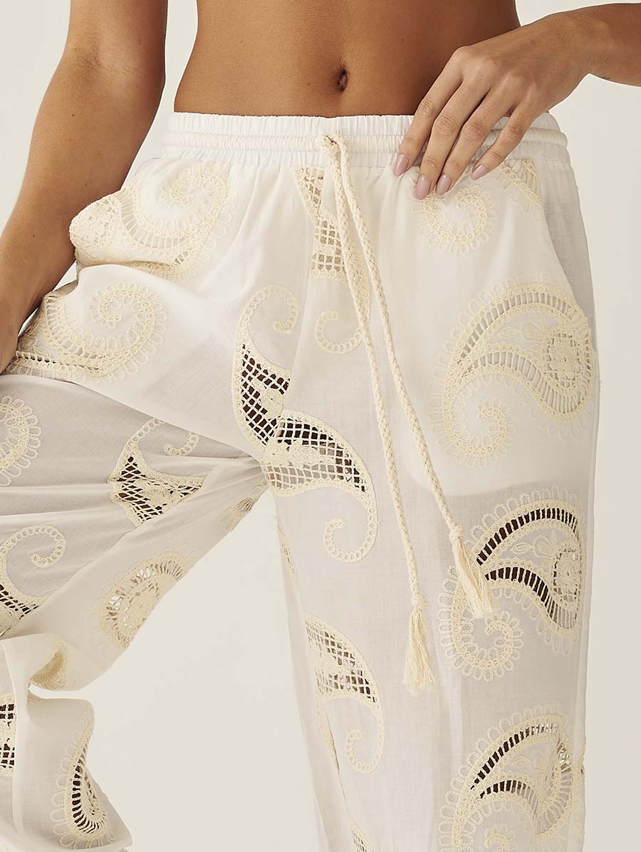 Uma calça leve e cheia de personalidade — ideal para quem ama um charme extra no Verão