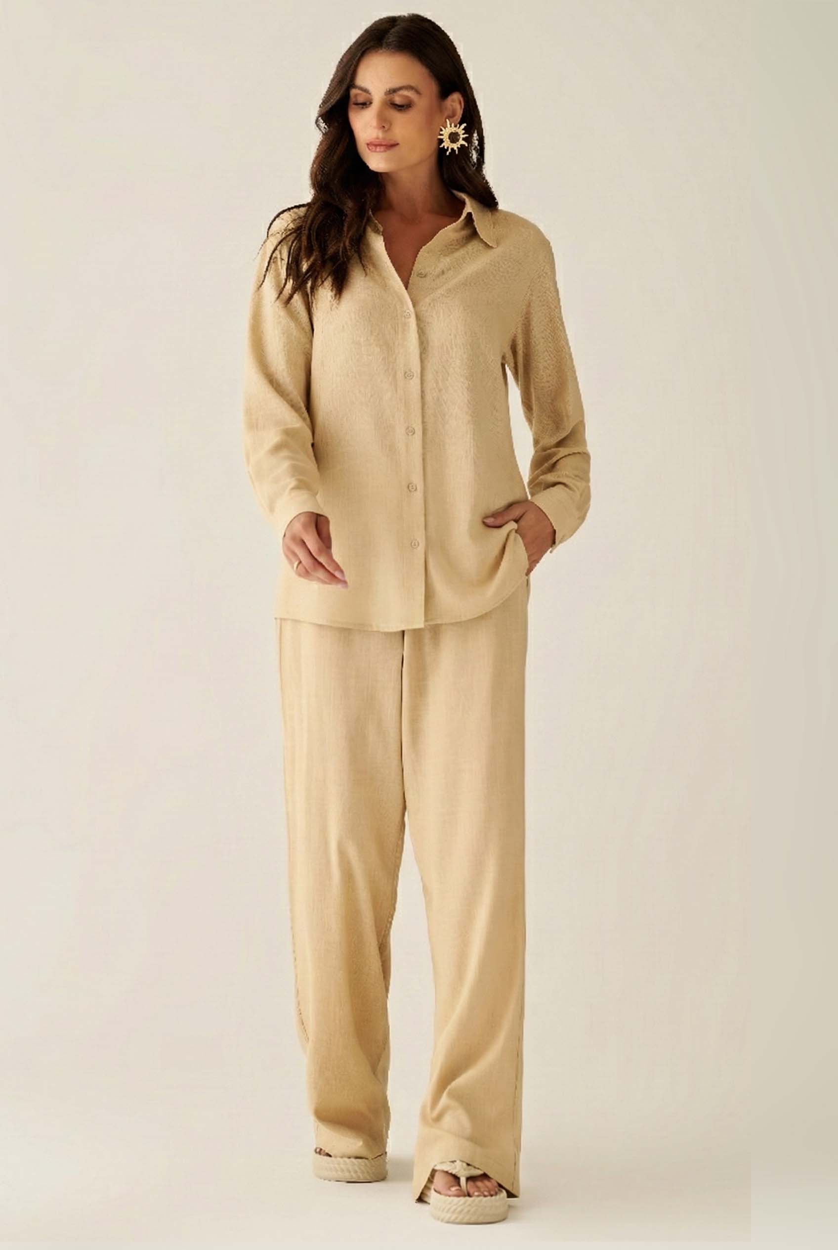 Camisa de Mangas Longas Areia Luzente — Elegância e leveza fashionista