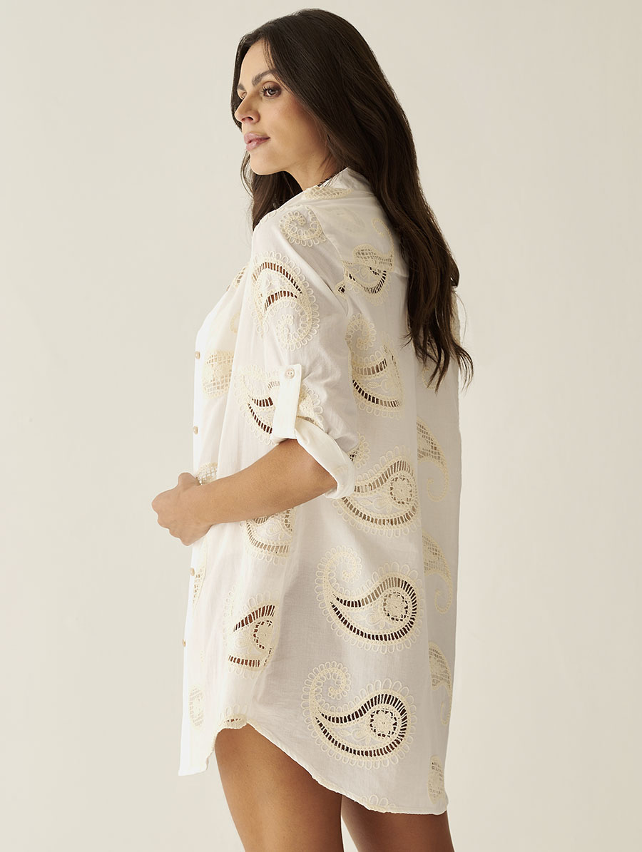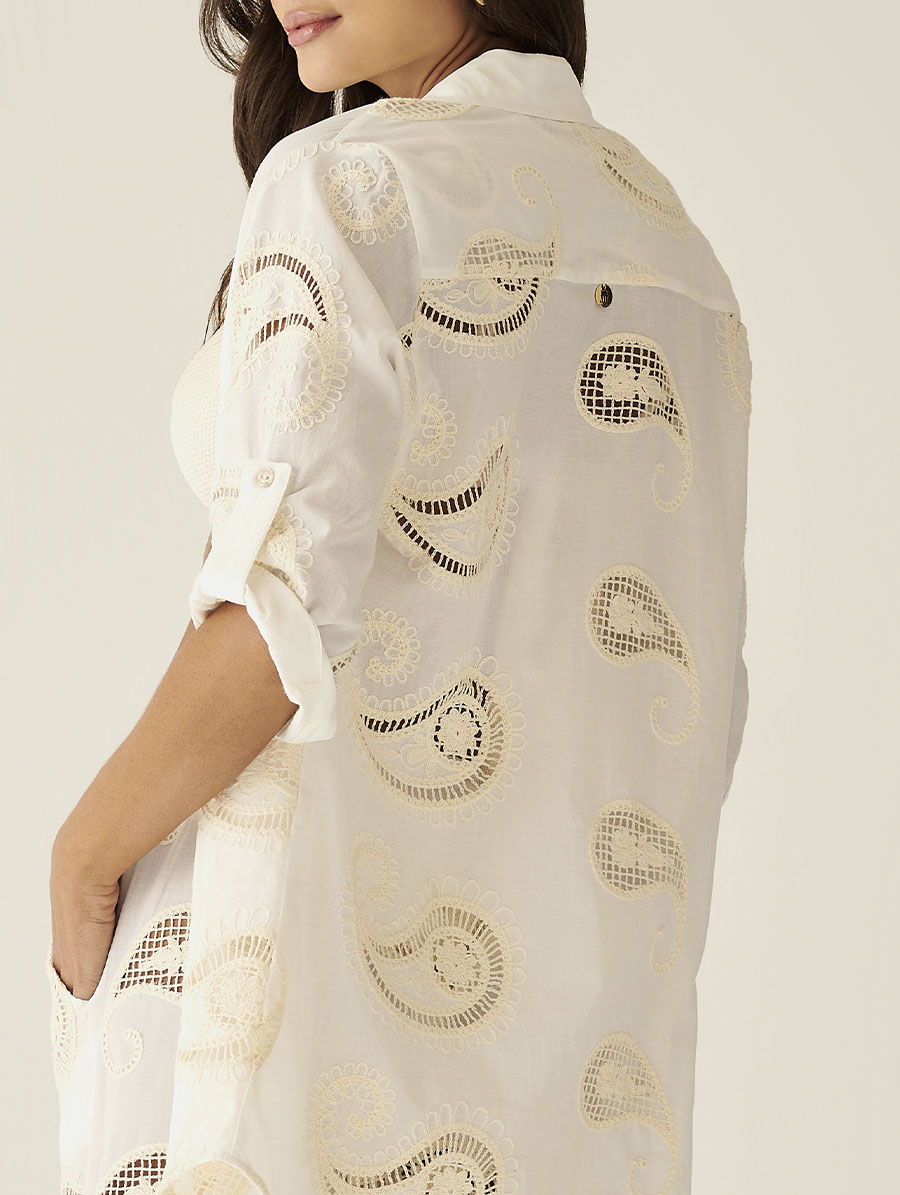 Chemise em Algodão Bordado Paisley Off White Orla