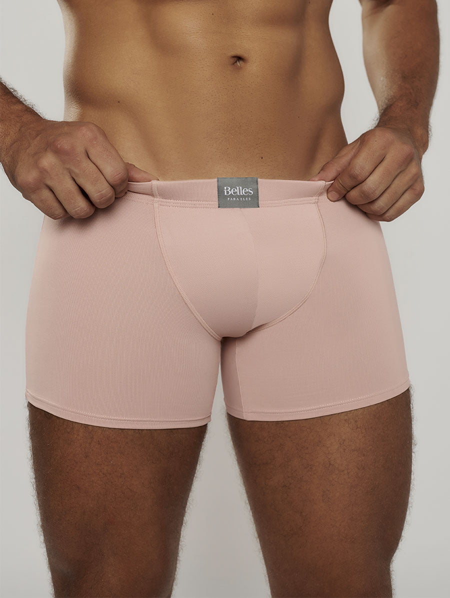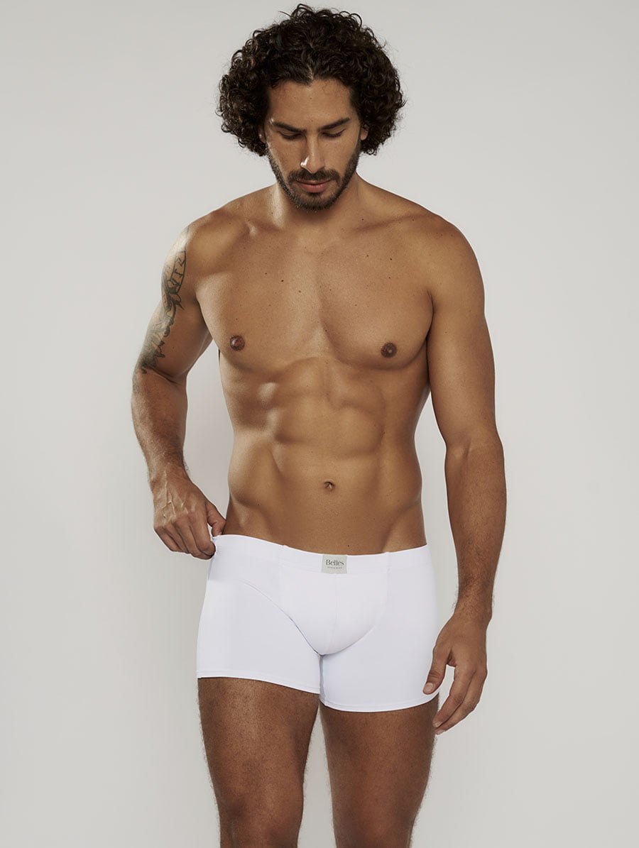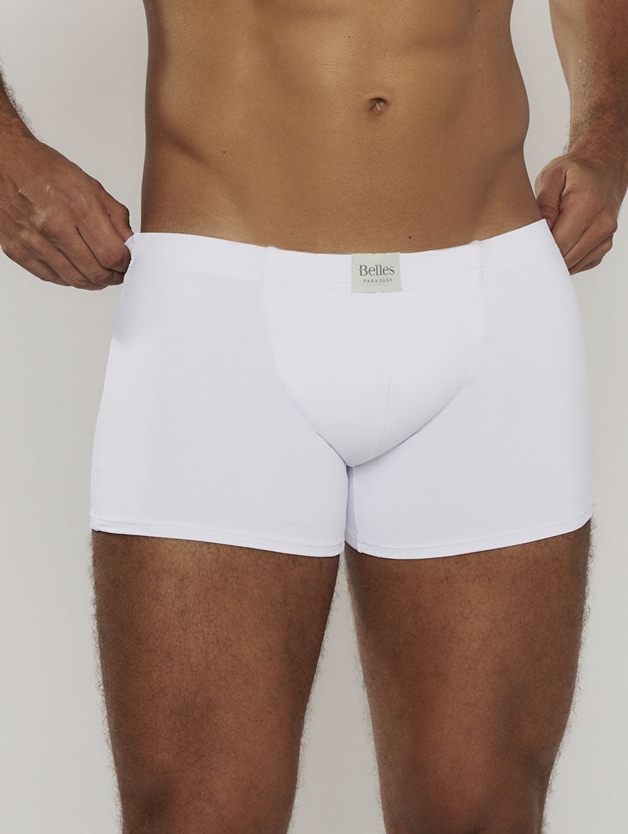 O cós contornado com elástico embutido garante ajuste seguro sem apertar, enquanto a costura frontal estruturada oferece suporte adicional e maior conforto, destacando o cuidado da Belles com detalhes que fazem diferença no dia a dia masculino.