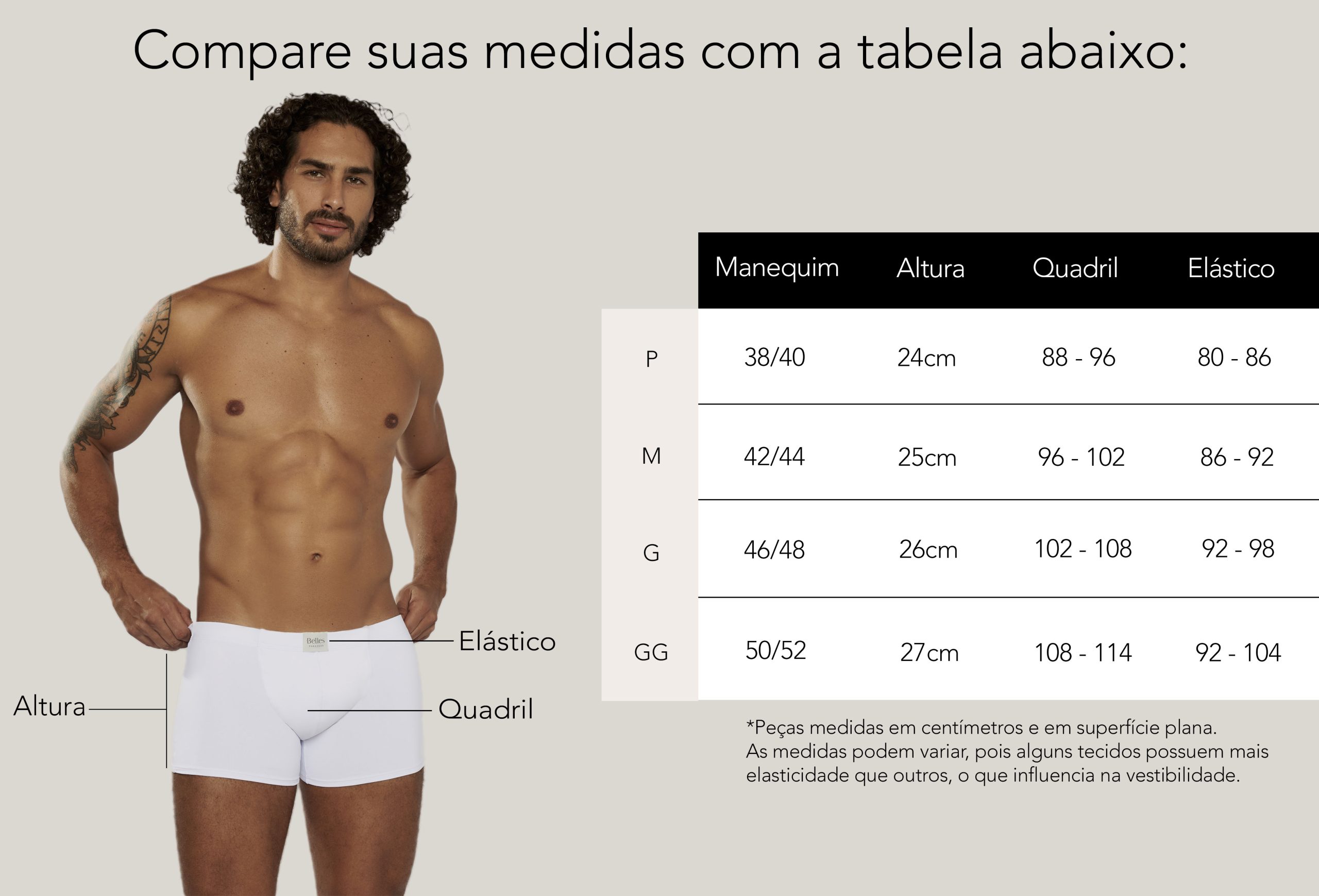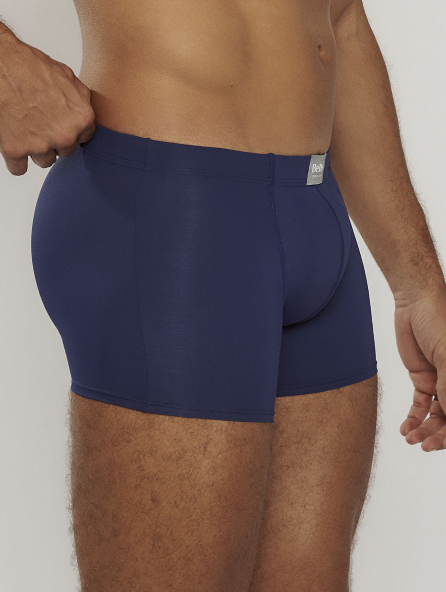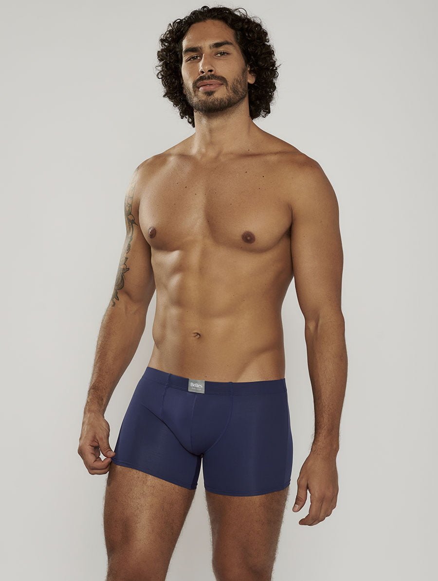 O cós contornado com elástico embutido garante ajuste seguro sem apertar, enquanto a costura frontal estruturada oferece suporte adicional e maior conforto, destacando o cuidado da Belles com detalhes que fazem diferença no dia a dia masculino.