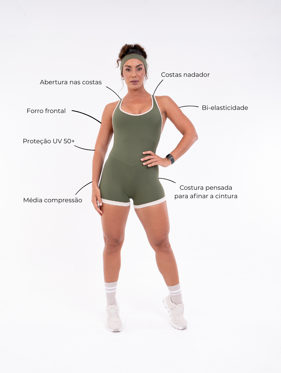 Macaquinho Fitness Curto Nadador Bicolor Verde Cacto
