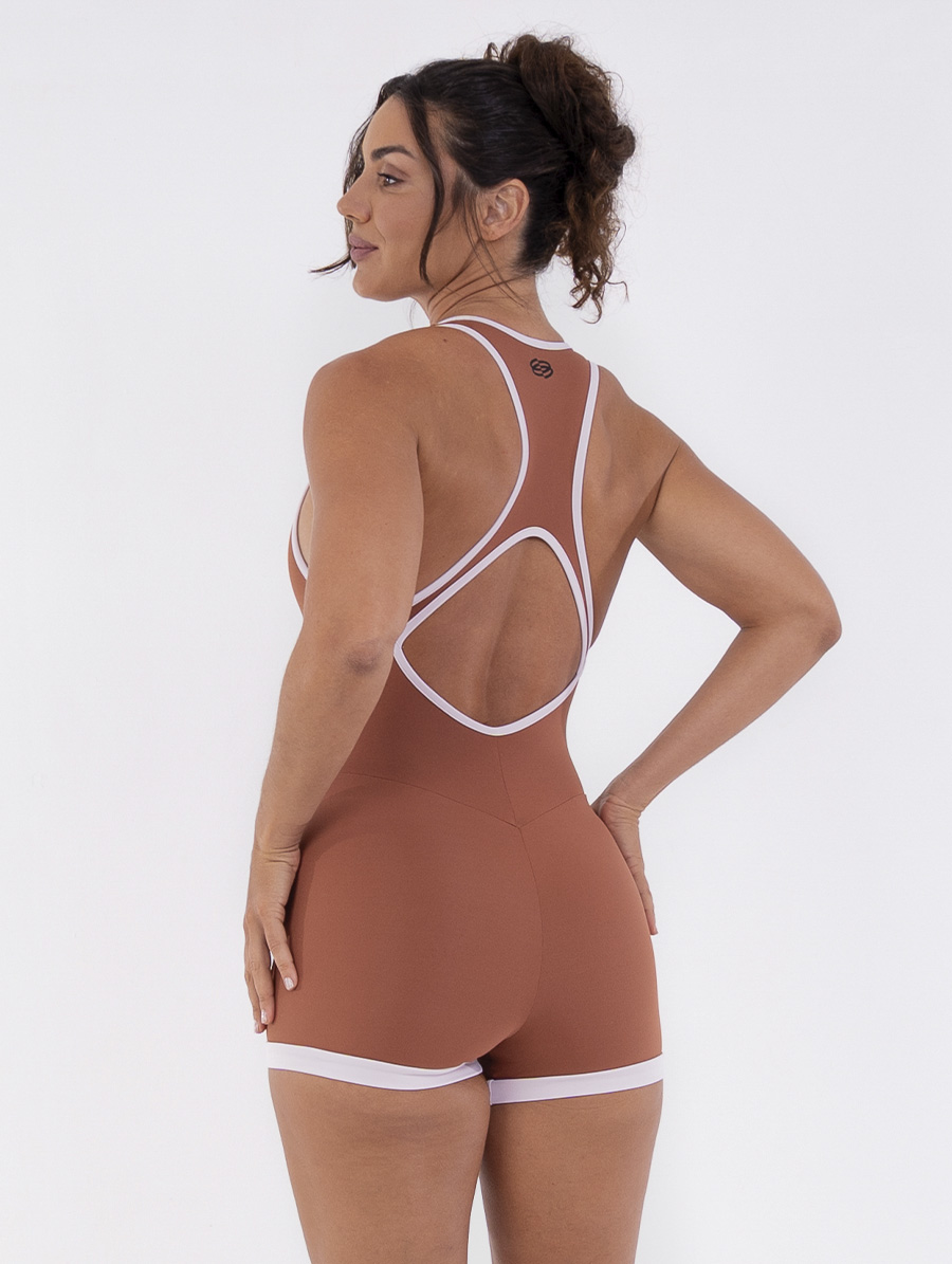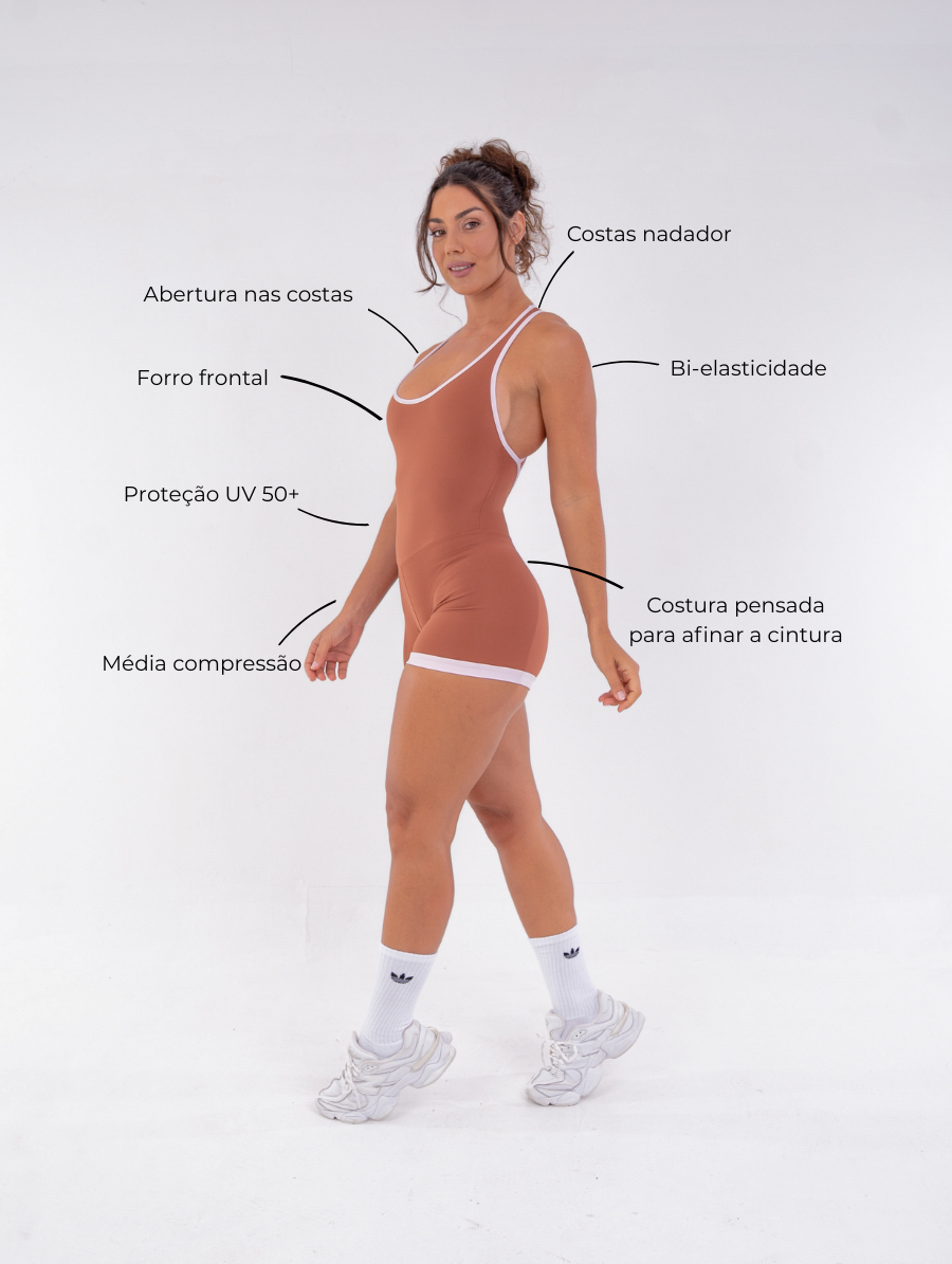 Macaquinho Fitness Nadador em Microfibra Terracota Belles | Conforto e Performance