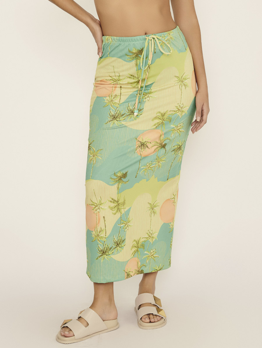 A Saia Midi Laguna é uma peça perfeita para dias de sol, seja na praia, na beira da piscina ou em um look casual fresh. Produzida em tecido jacquard com textura mini piquet e um leve brilho, essa saia é perfeita para diversas ocasiões. A estampa exclusiva cria uma conexão com dias ensolarados e alegres. Com cintura de elástico embutido e tira para amarração finalizada em ponteiras, ela oferece ajuste perfeito e um toque de estilo. O detalhe traseiro em fenda central adiciona um charme extra, enquanto a medalhinha de metal personalizada complementa o visual.