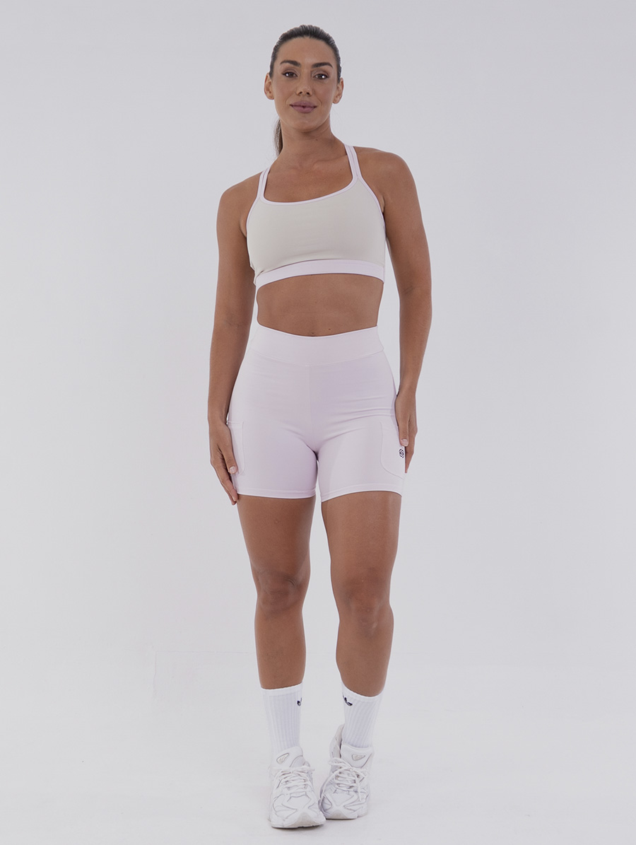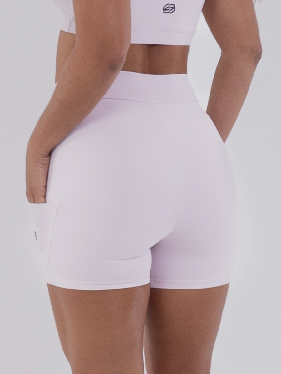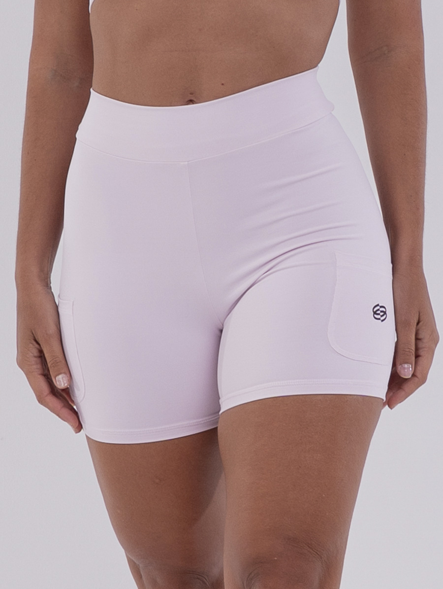 Short Curto Fitness Cós Alto e Bolsos Rosa Calmy