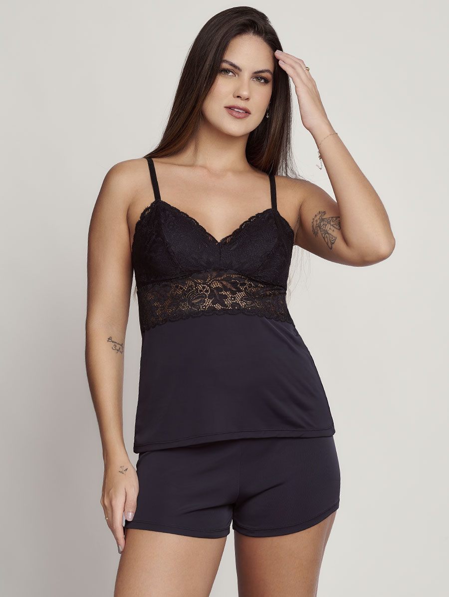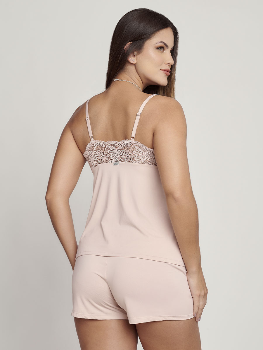 Confeccionado em microfibra de alta qualidade com detalhes em renda no sub-busto e nas costas, o short doll combina sofisticação e toque delicado, tornando-o ideal para momentos de descanso ou para noites relaxantes. A proteção UV+ garante cuidado extra, mesmo durante o uso em ambientes mais iluminados.