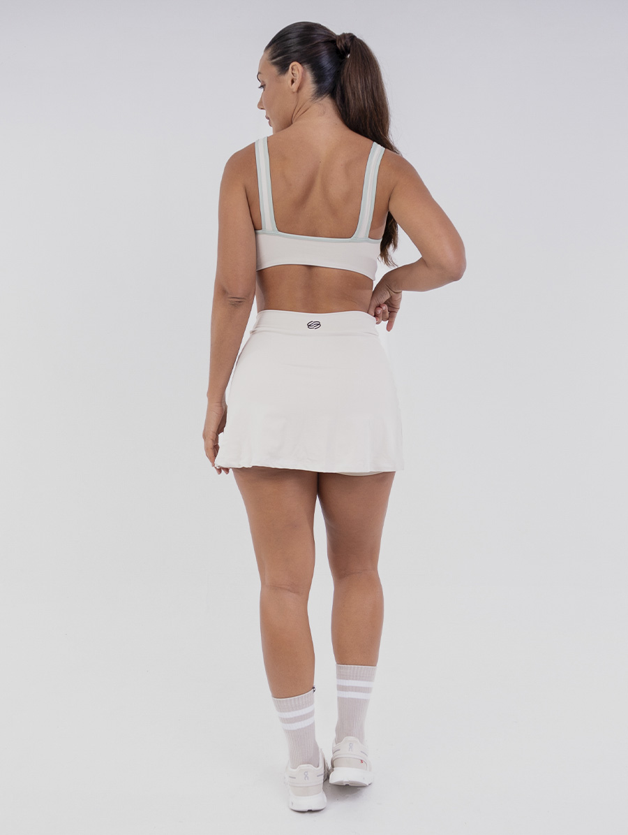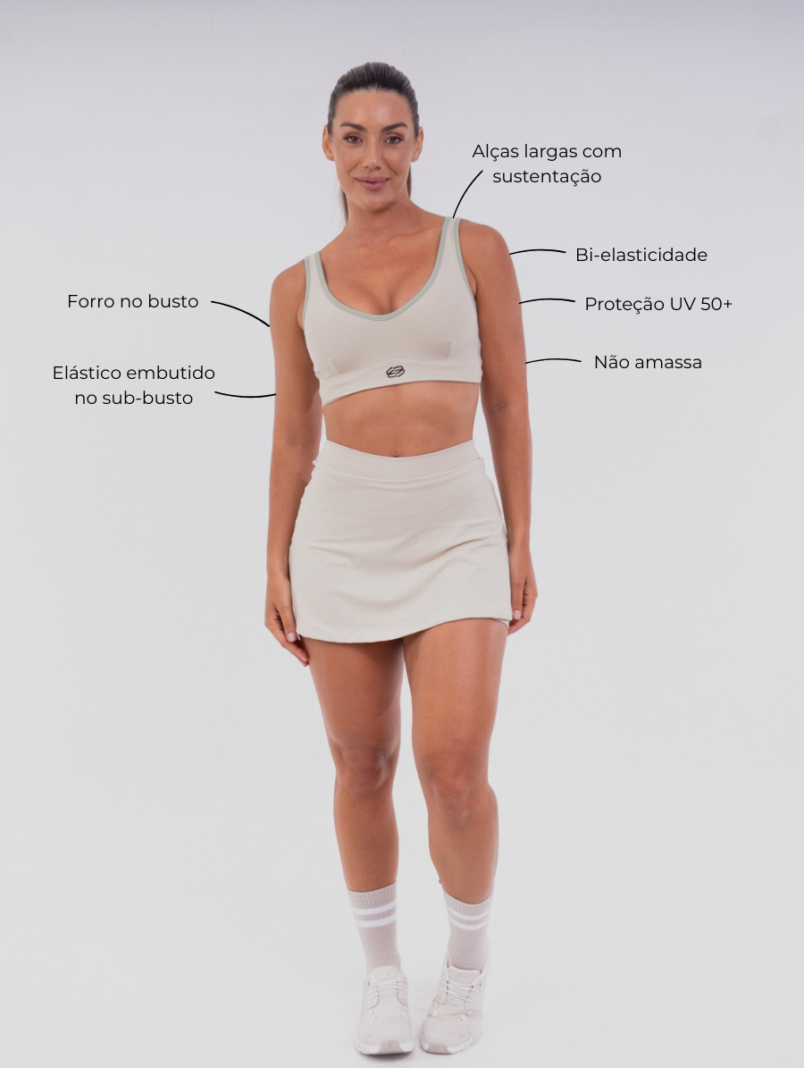 Dica Belles: combine-o com o Short Saia Curto Verde Aloe para um conjunto harmonioso de beach tennis ou com uma calça legging preta de média compressão para um treino completo na academia.