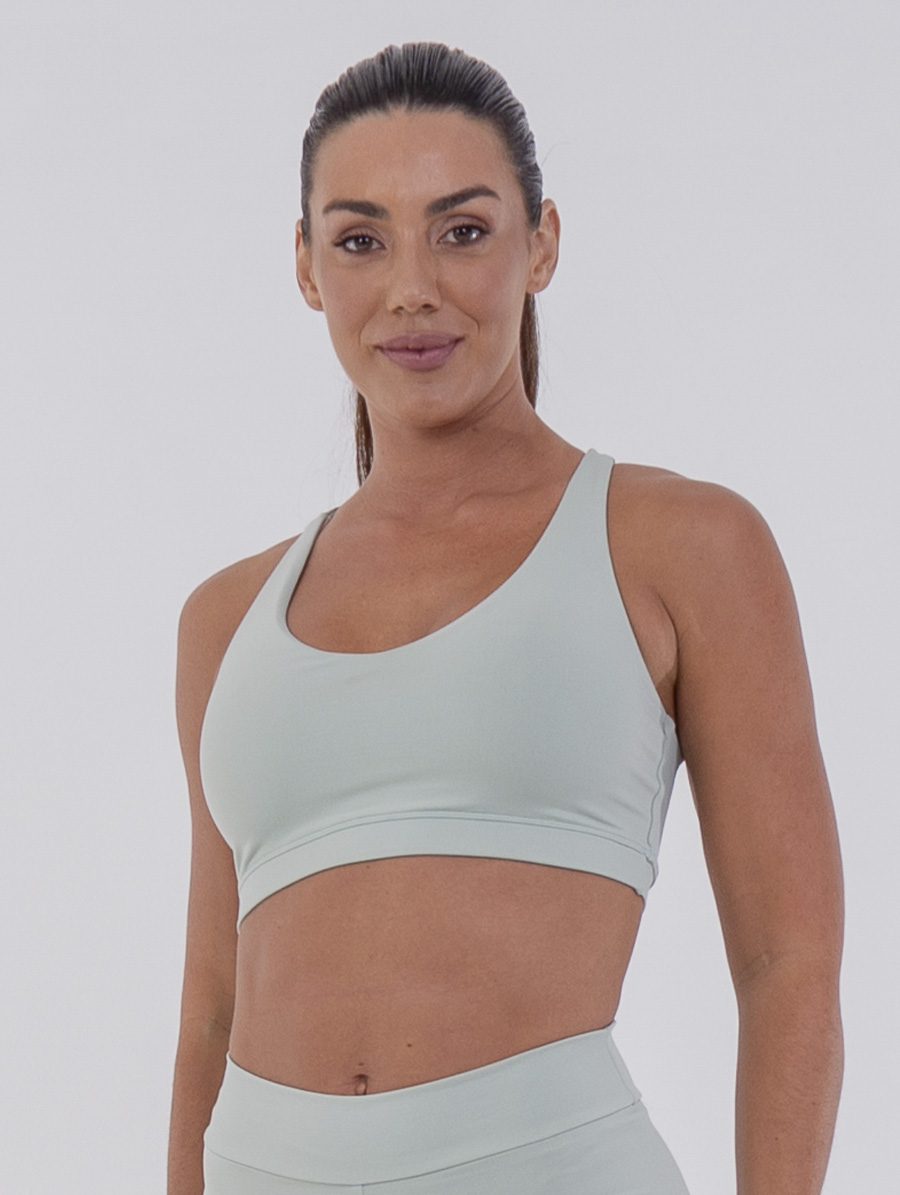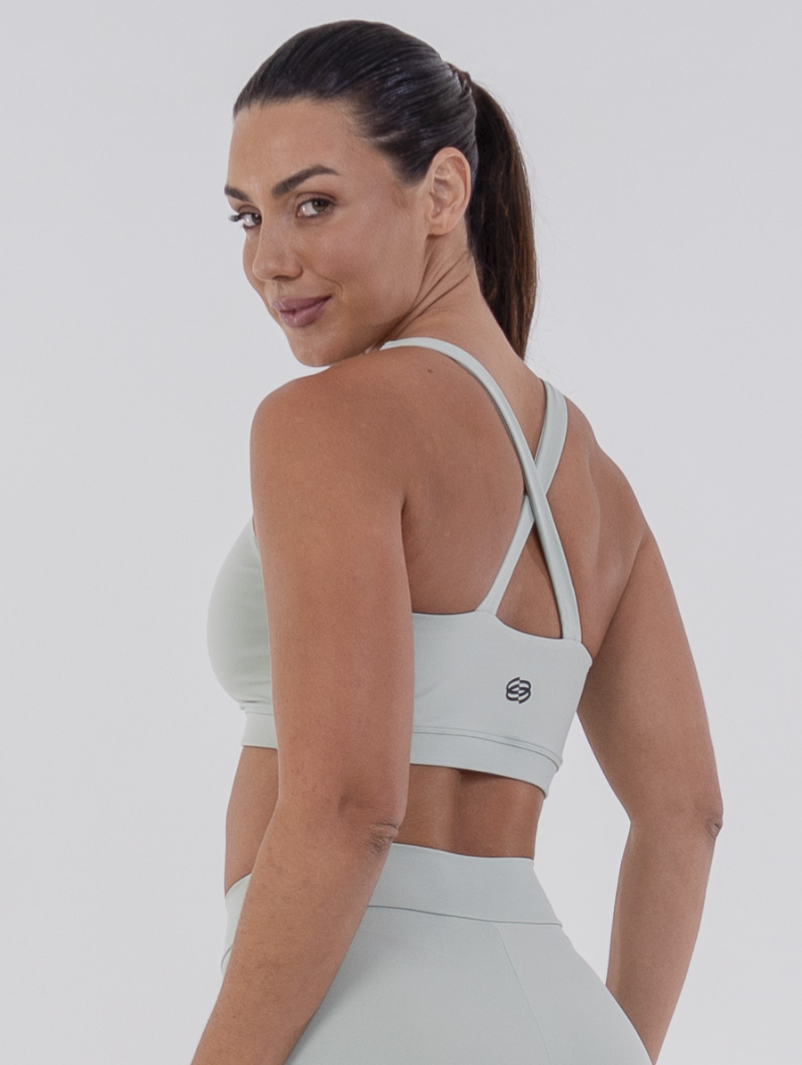 Top Fitness Alças Cruzadas Verde Aloe Belles | Máxima Segurança e Toque Gelado