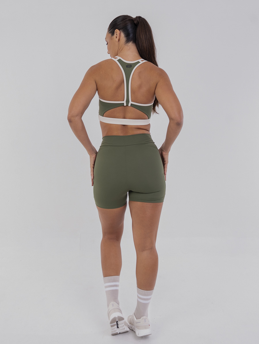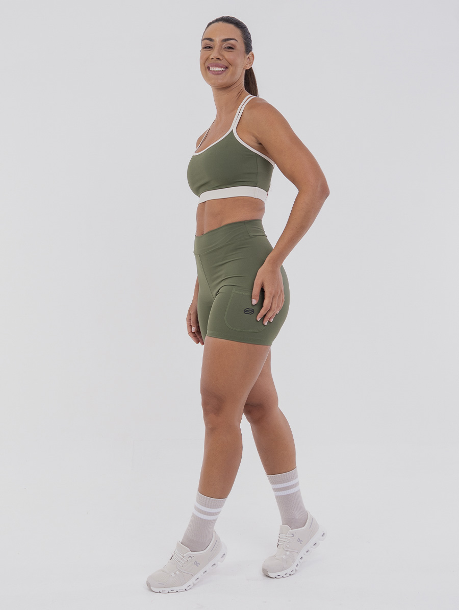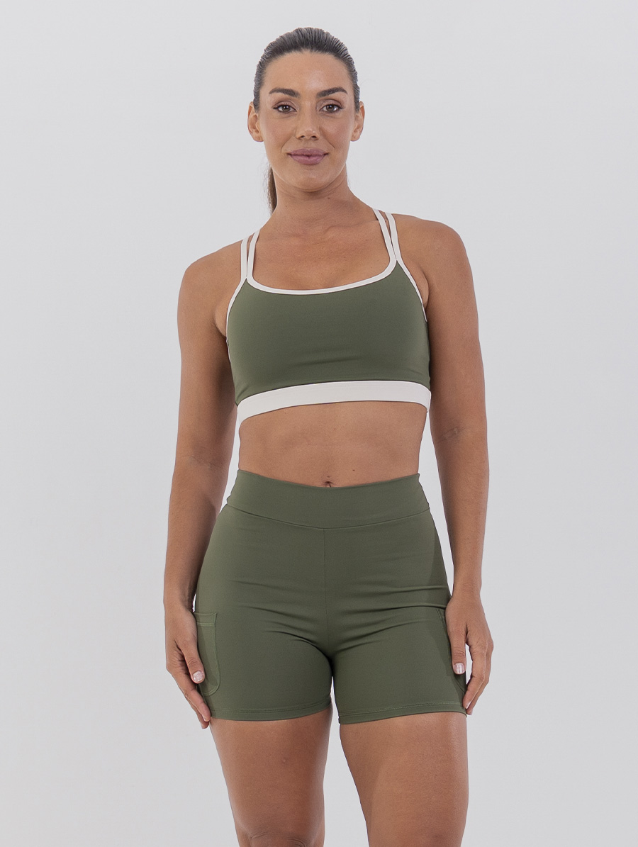 Short Curto Fitness Cós Alto e Bolsos Verde Cacto