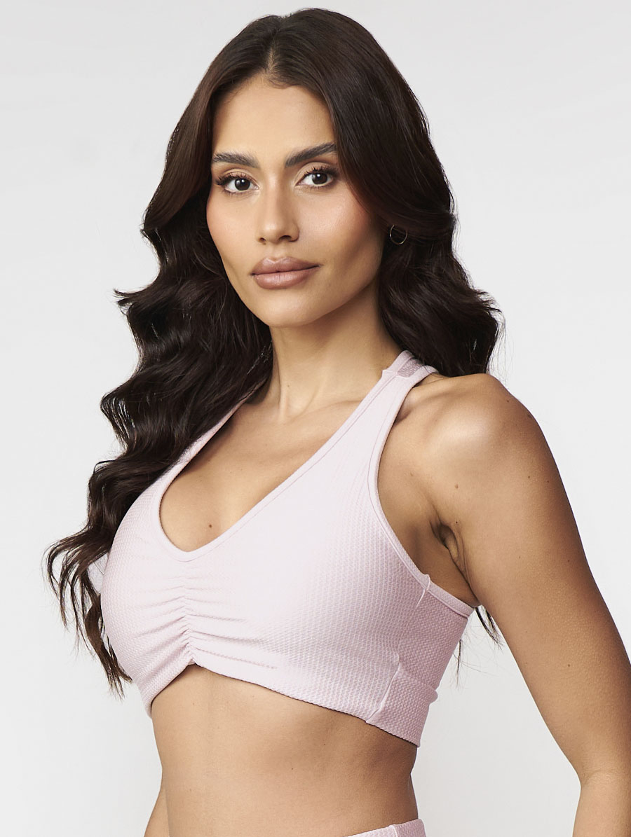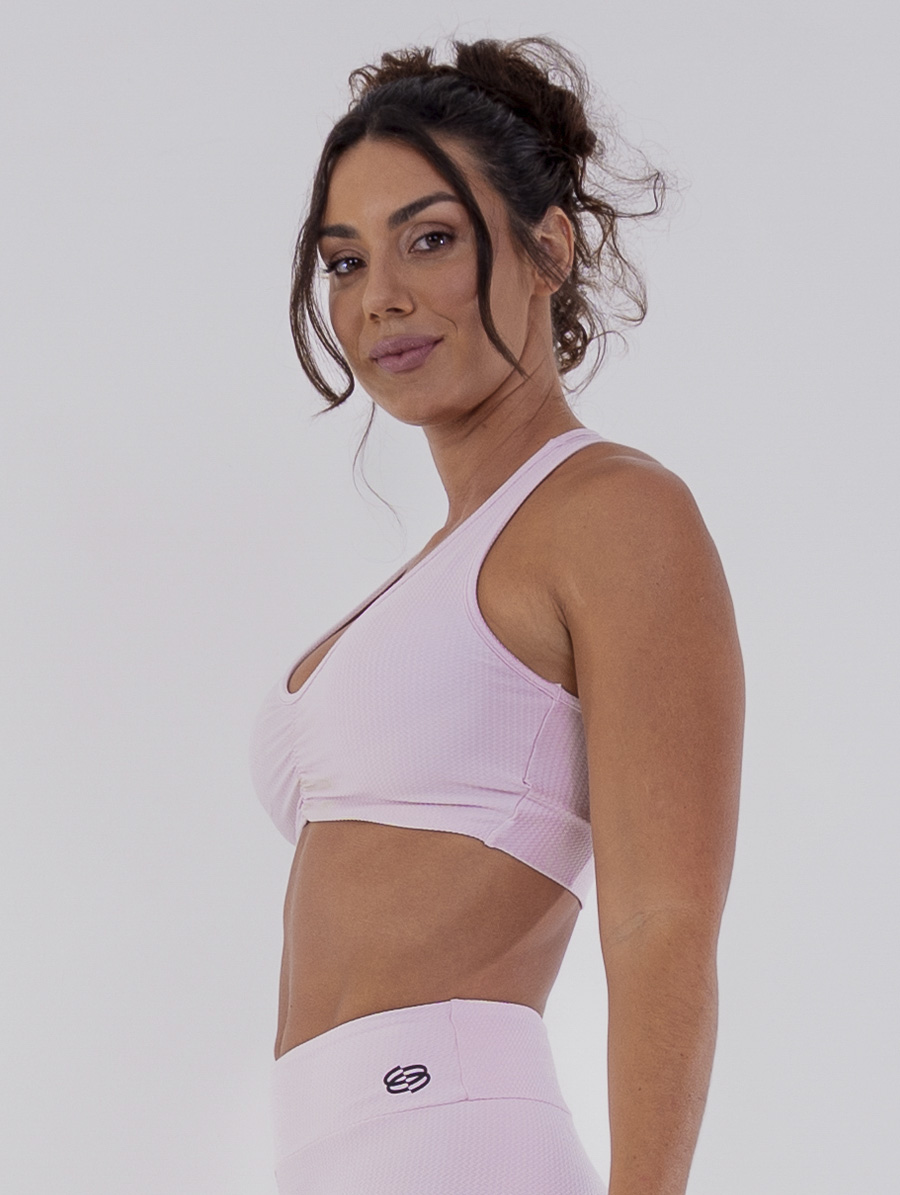 Com bojos removíveis e um detalhe franzido no centro do busto, o top valoriza a silhueta de forma natural, unindo sustentação e feminilidade. A pala com elástico nas costas proporciona ajuste firme e seguro, sem restringir os movimentos — perfeita combinação entre leveza e suporte.