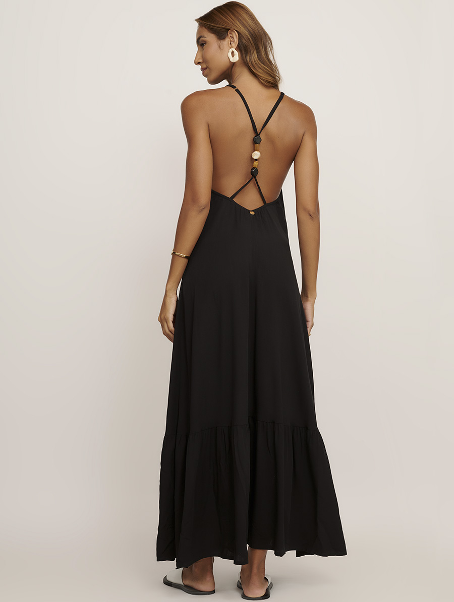 Vestido Longo Frente Única em Viscolinho Preto Destino