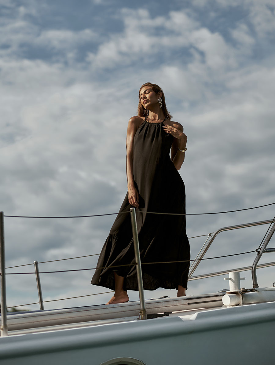 O Vestido Longo Frente Única em Viscolinho Preto Destino é a tradução de elegância atemporal com um toque moderno e sofisticado. Em primeiro lugar, é produzido em viscolinho leve e fluido, por isso, apresenta caimento impecável que valoriza o movimento do corpo.