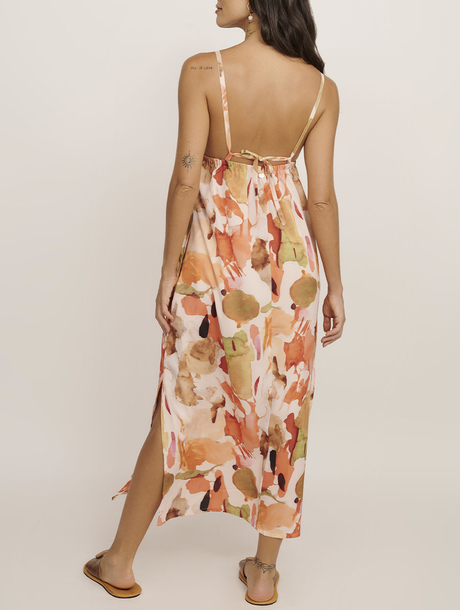 Extremamente versátil, o Vestido Midi Verano pode ser usado sozinho ou combinado com acessórios da linha, criando looks city to beach, perfeitos para transitar com estilo entre passeios urbanos, almoços ao ar livre ou momentos à beira-mar, sem abrir mão de conforto e elegância.